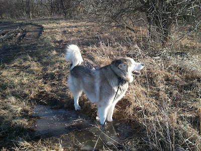 It was a great day to be a Malamute! Blizzards are the best - cold, wind, and lots and lots of snow. The snow and wind combo is the best because the wind blows the falling, and fallen, snow every which way and it seems the entire World, from top to bottom, is nothing but snow. Bliss! Almost. Pure Bliss would have been to enjoy the blizzard in total freedom. However, there is this thing attached to me called a "chain" and it is really effecting my joie de vivre. And cramping my style. I'm just sayin'...